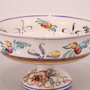 A fruteira de porcelana feita à mão, datada do século XX, é uma peça que traduz o cuidado, a elegância e o talento dos artesãos da época. Mais do que um simples recipiente para frutas, ela representava status, beleza e tradição nos lares onde esteve presente.