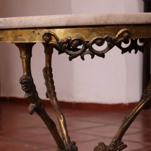 Mesa redonda de ferro e mármore