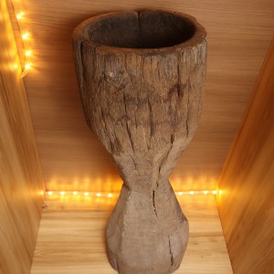 Antigo pilão de madeira, servia como utilitário para processamento manual de grãos, tais com: Milho e Café.