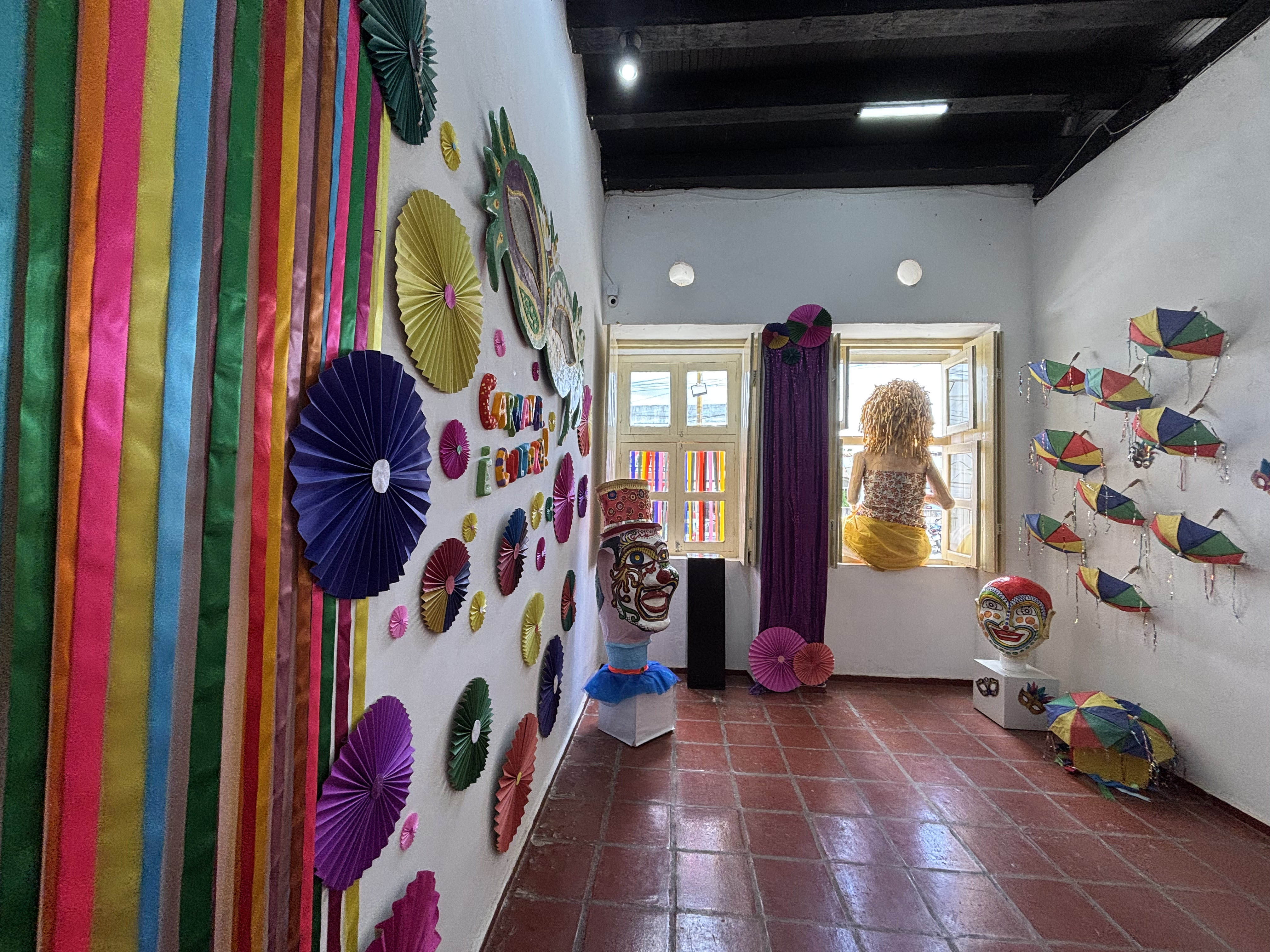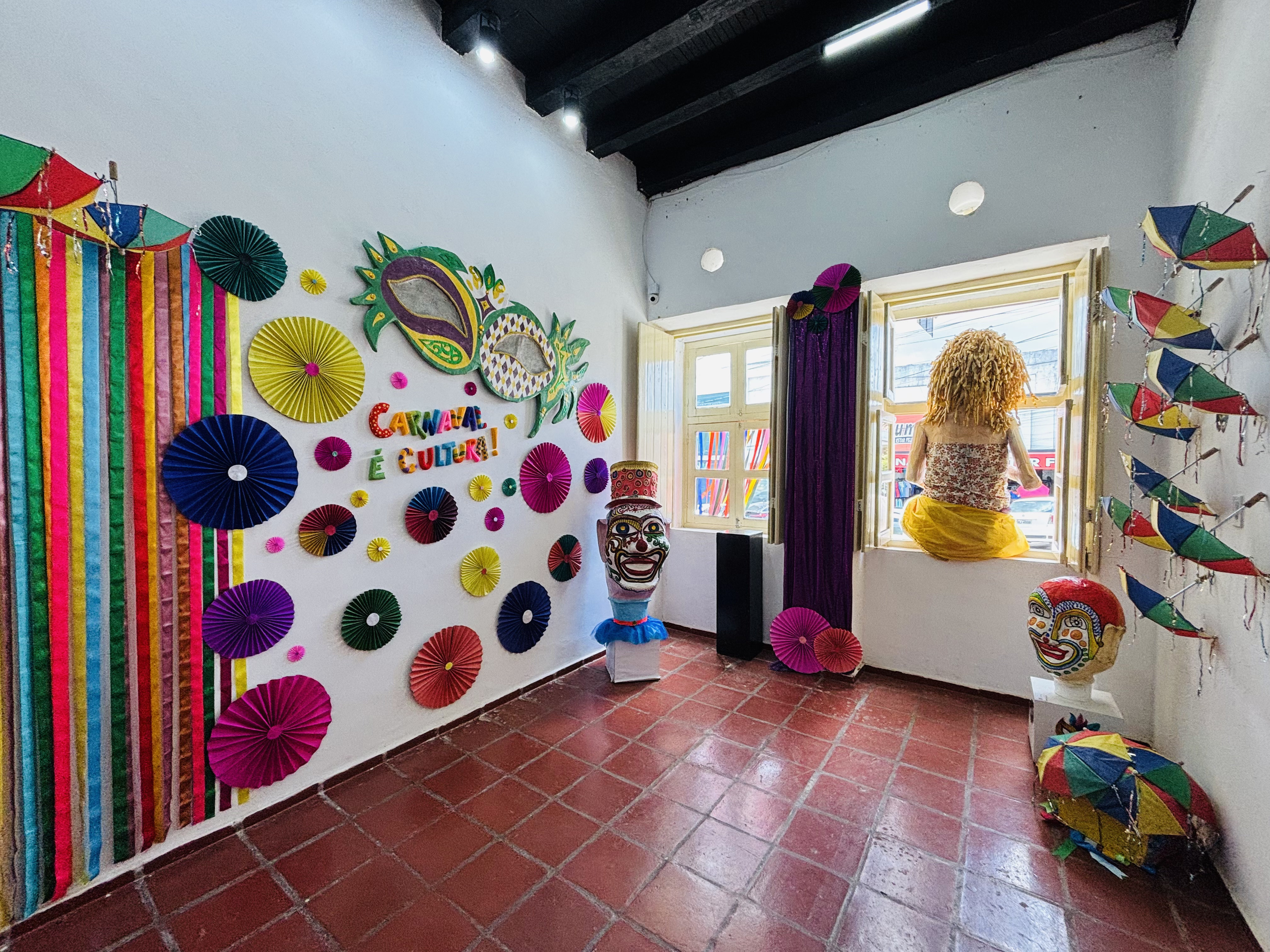 A exposição que ocupa tanto o espaço expositivo interno quanto o calçadão da Casa da Cultura, valoriza elementos simbólicos do Carnaval, como cores vibrantes, máscaras, bonecos gigantes, adereços e referências da cultura popular, reafirmando a festa como expressão da identidade cultural e da memória coletiva.