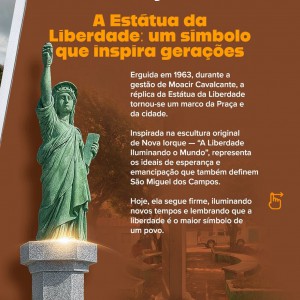 gerações. No centro, a imponente réplica da Estátua da Liberdade segue